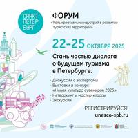 В Санкт-Петербурге с 23 по 25 октября 2025 года пройдет Международный форум, «Роль креативных индустрий в социально-экономическом развитии туристских территорий, в том числе входящих в Сеть творческих городов ЮНЕСКО».